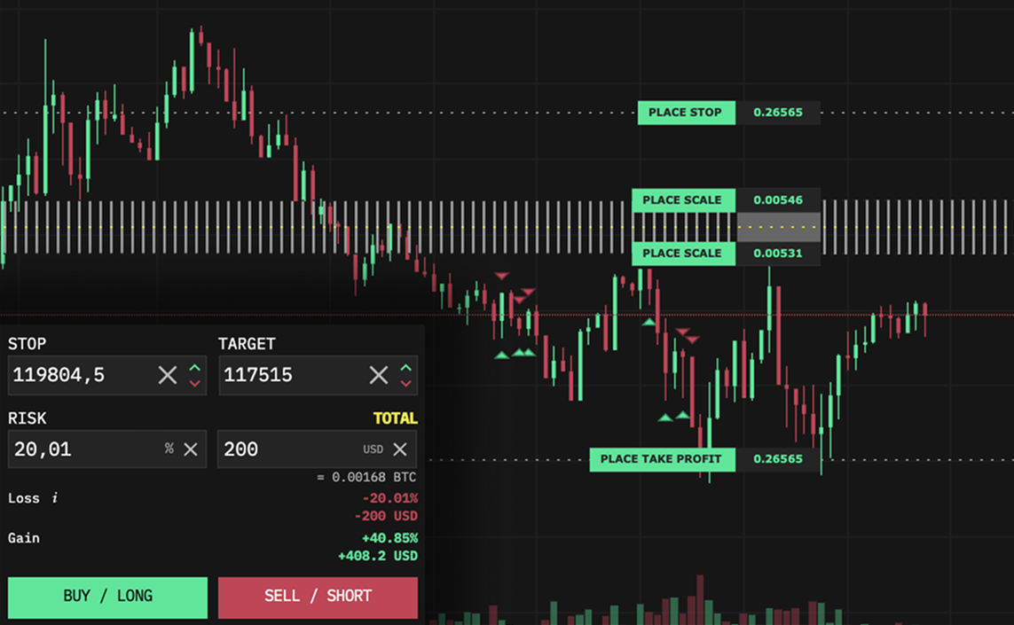 Experience intuitive and fast order placement and use automated sizing according to your risk.